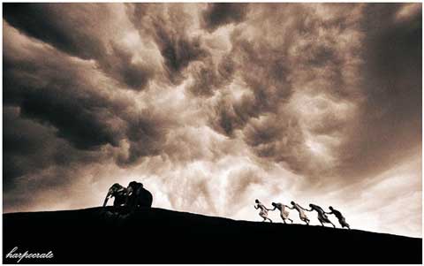همه ی وهم زندگی و سلوک از آنجا نشات میگیرد که فَرِحُواْ بِهَا ... که بدان خرسندیم ... در مأمن کشتی خود جای گرفته ایم و چه دلخوشیم که امواج سهمگین اقیانوس در زیر پای ماست و ما در ساحل امن خود اقیانوس را نظاره گریم و معنا میکنیم . چقدر ساده و کودکانه است بر ساحل نشستن و آقیانوس را معنا کردن . اقیانوسی که میشناسیمش !!! و بدان خرسندیم ...